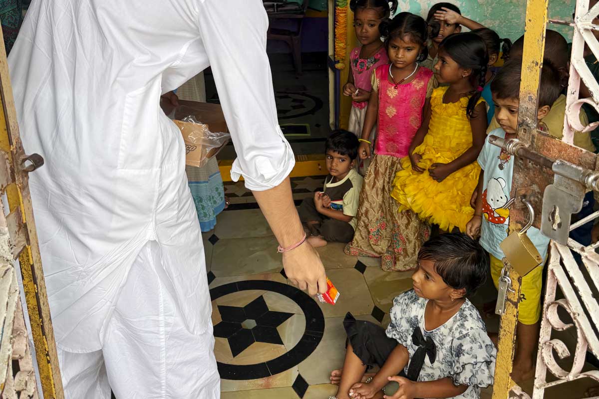 Travelling by auto through the humble village lanes, 5 to 7 volunteers carried not just food, but warmth and joy — distributing slices of cake and Frooti packets to over 100 children and participants. What may have seemed like a simple gesture became a celebration of gratitude, community, and connection.